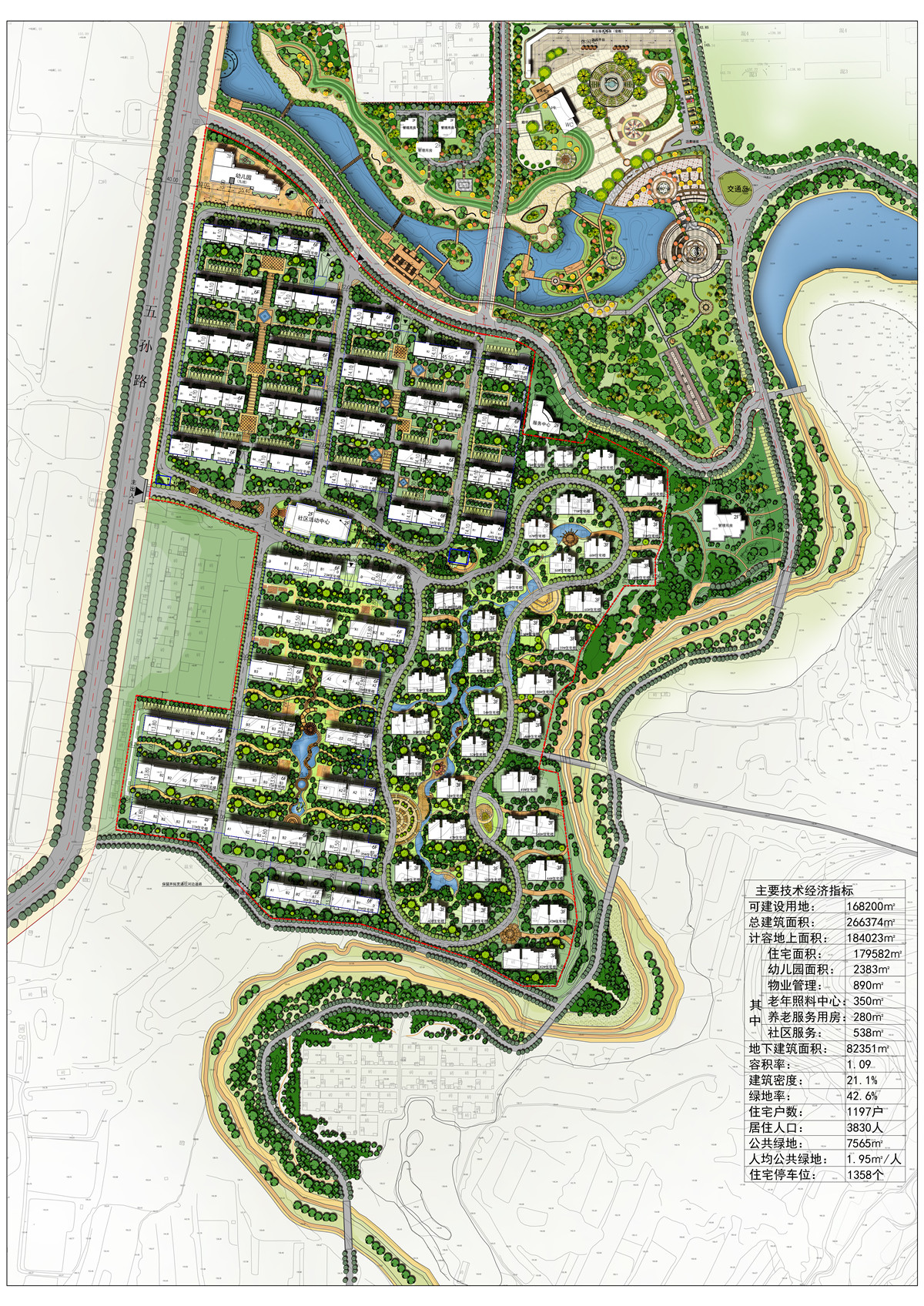 项目位于山东省潍坊市青州市王府街道,南至沿河路,北至郄圈路,东至沿河东路,西至五孙路。规划用地呈北低南高,西低东高,基地内地势起伏比较大。规划方案中产品类型涵盖住宅、幼儿园、及配套公建等。方案设计遵循原生态、步行尺度、多元化的理念,让建筑与环境有机联系,城市、景区、居住有机结合,融合健康、颐养理念,打造集自然生态、居住、文化为一体的综合社区。