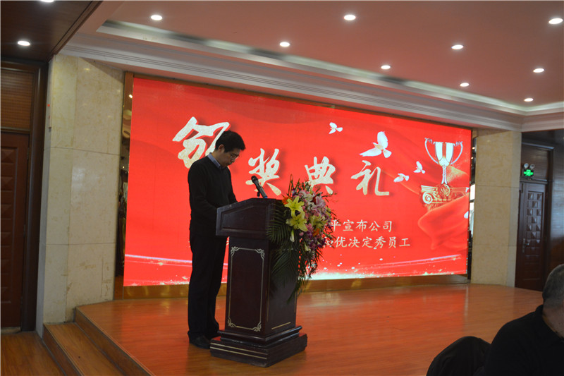 公司总经理李浩平宣布公司关于表彰先进单位和优秀员工的决定
